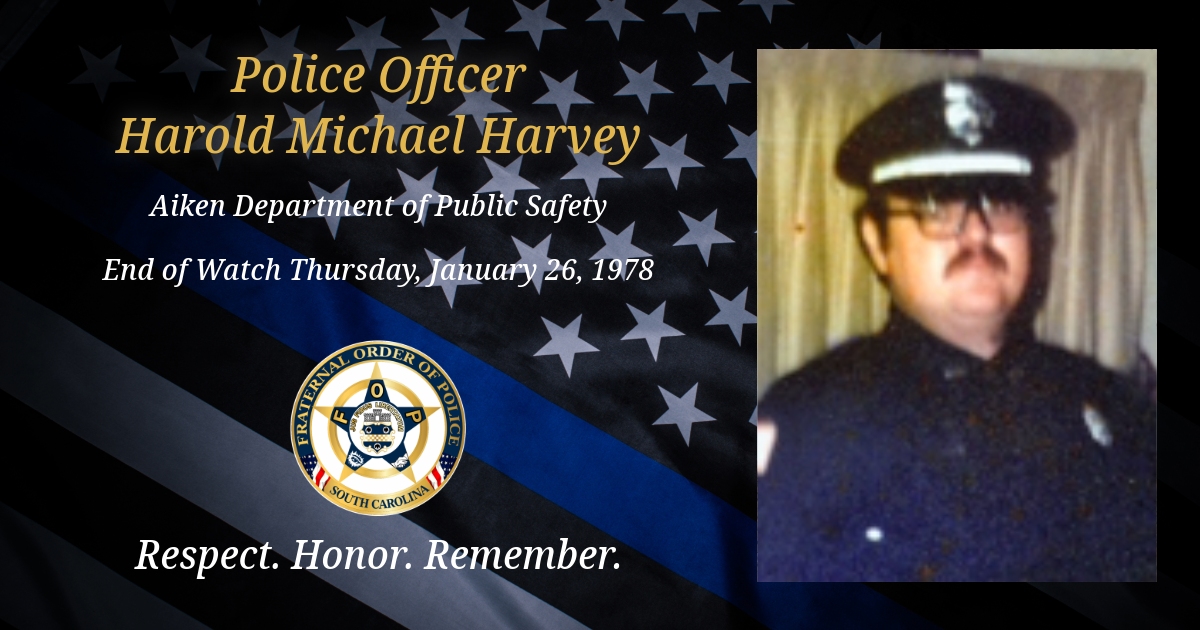 Today, we remember City of Aiken, South Carolina Government Department of Public Safety Police Officer Harold Michael Harvey.