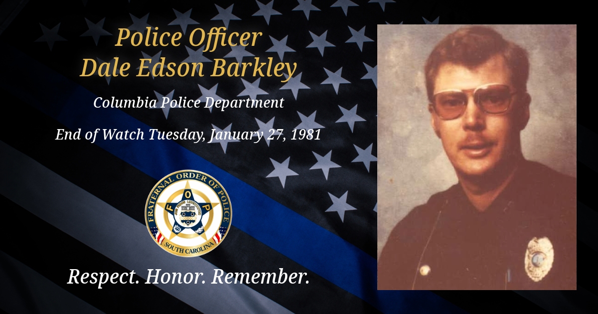 Today, we remember Columbia Police Department, SC Police Officer Dale Edson Barkley.