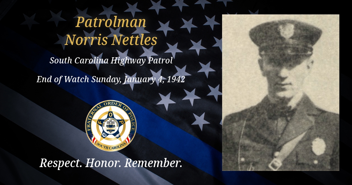 Today, we remember South Carolina Highway Patrol Patrolman Norris Nettles.