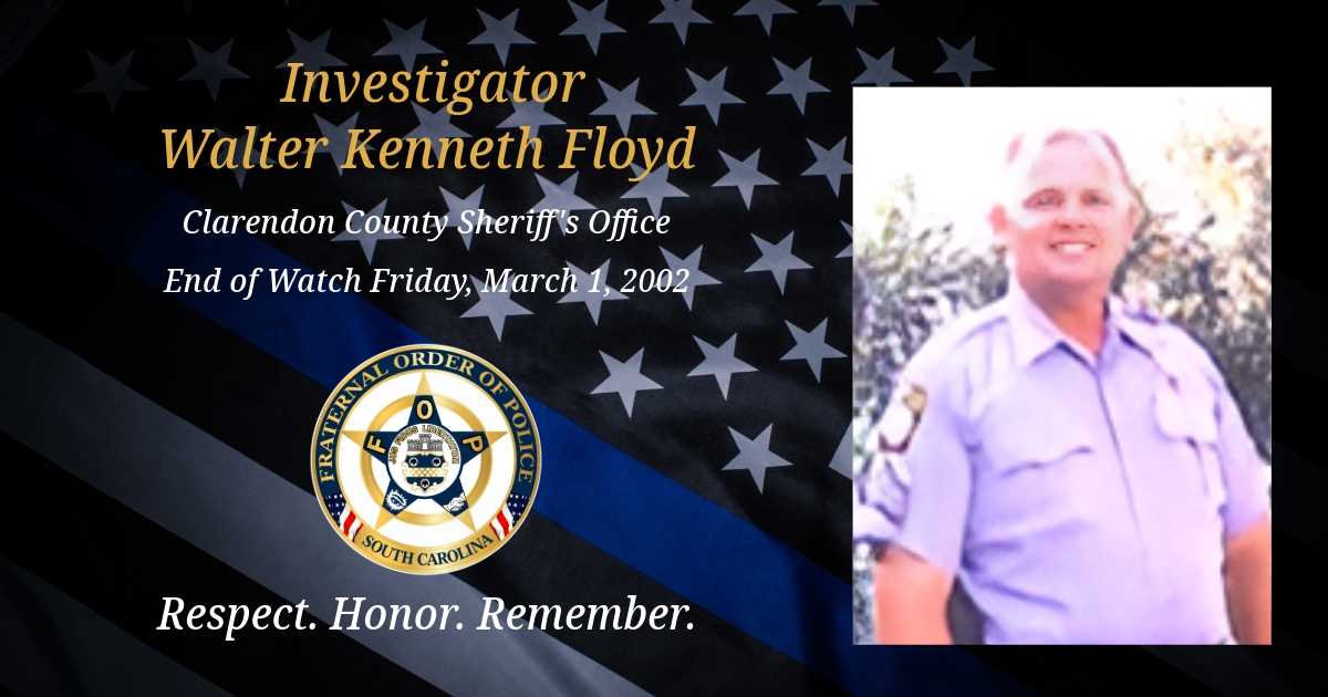 Today, we remember Clarendon County Sheriff’s Office Investigator Walter Kenneth Floyd.