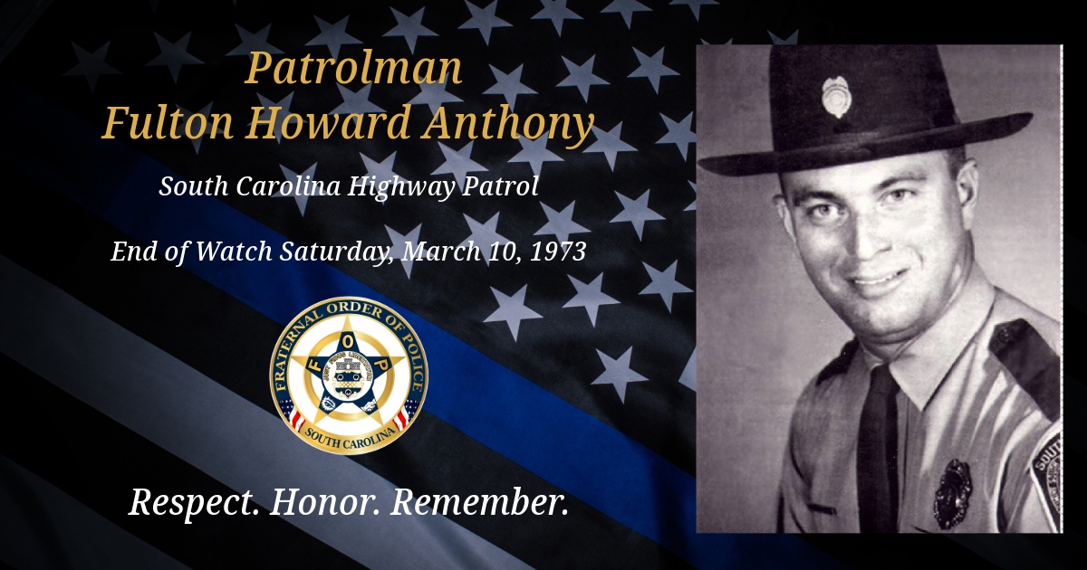 Today, we remember South Carolina Highway Patrol Patrolman Fulton Anthony.