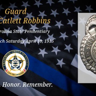 Today, we remember South Carolina Department of Corrections Guard John Catlett Robbins. On this date in 1915, Guard Robbins succumbed to gunshot wounds he had sustained during a bloodhound track […]
