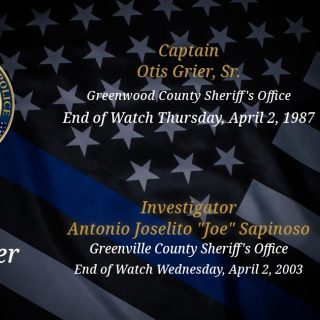 Today, we remember Greenwood County Sheriff’s Office Captain Otis Grier, Sr., and Greenville County Sheriff’s Office Investigator Antonio Joselito “Joe” Sapinoso. On this date in 1987, Captain Grier was killed […]