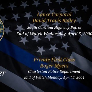 Today, we remember South Carolina Highway Patrol Lance Corporal David Travis Bailey and City of Charleston Police Department Private First Class Roger Myers. On this date in 2000, Lance Corporal […]