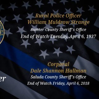 Today, we remember Sumter County Rural Police Officer William Muldrow Strange and Saluda County Sheriff’s Office Corporal Dale Shannon Hallman. On this date in 1937, Rural Police Officer William Strange […]