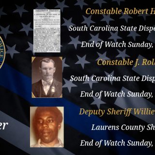 Today, we remember Laurens County Sheriff’s Office Deputy Willie James Blakely, South Carolina State Dispensary Commission Constable James Rollin Cooler, and South Carolina State Dispensary Constable Robert Hayne Pepper. On […]